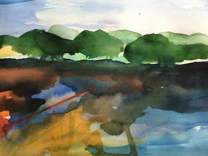 "Kväll vid vattnet". Akvarell. SÅLD.