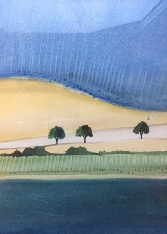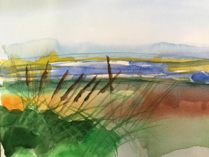 "Dansk strandäng". Akvarell 30 x 40 cm.